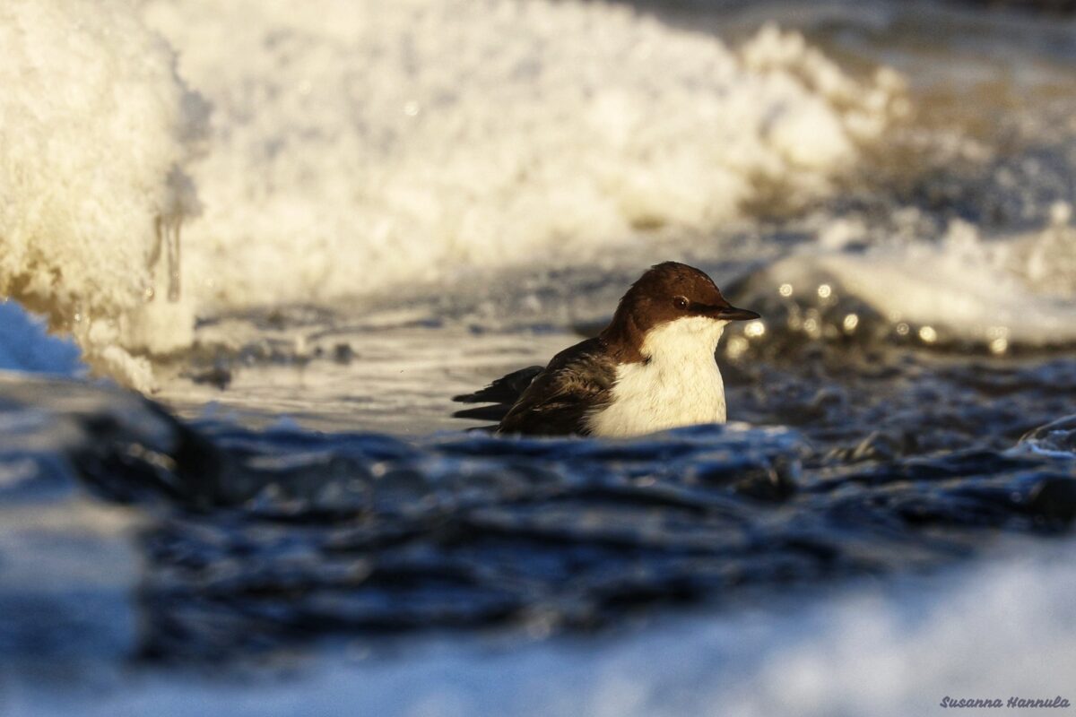 Uudenvuoden päivänä kuvasin tämän Koskikaran sukeltelemassa Nautelankosken alajuoksulla.Pakkasta oli -17 astetta