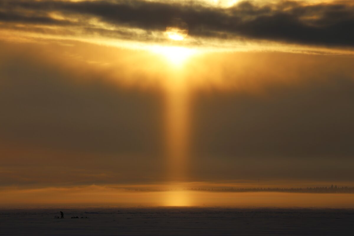 Joulukuun 3. päivänä oli sumuinen päivä ja aurinko teki enkelin Pyhäselän jäälle Joensuussa.