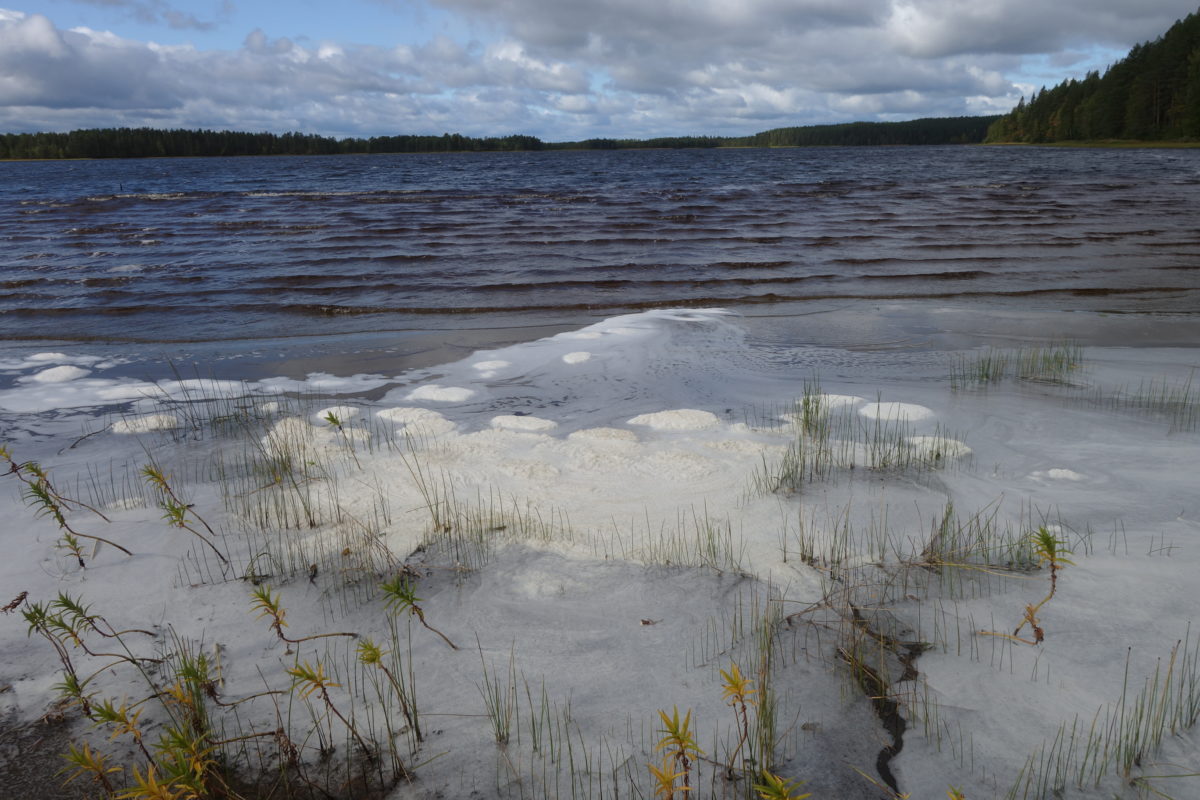 Mökkirannallemme oli ilmestynyt häikäisevän kirkasta vaahtoa kovassa tuulessa. Aiemmin emme ole sitä noin runsaana havainneet, vaikka vastaavaa tuulta on siellä ollut toki ennenkin. Nousi huoli, onko tämä Sotkamo Silverin toiminnan seurausta, vai luonnon omaa tuotosta? Toivottavasti huoleni on aiheeton, eikä Terrafamen kaltainen luonnon saastuttaminen edes pienessä määrin toistu tämän uuden kaivoksen myötä. Kuluttamista voimme vähentää vielä paljon, luonnon ja itsemme hyväksi!