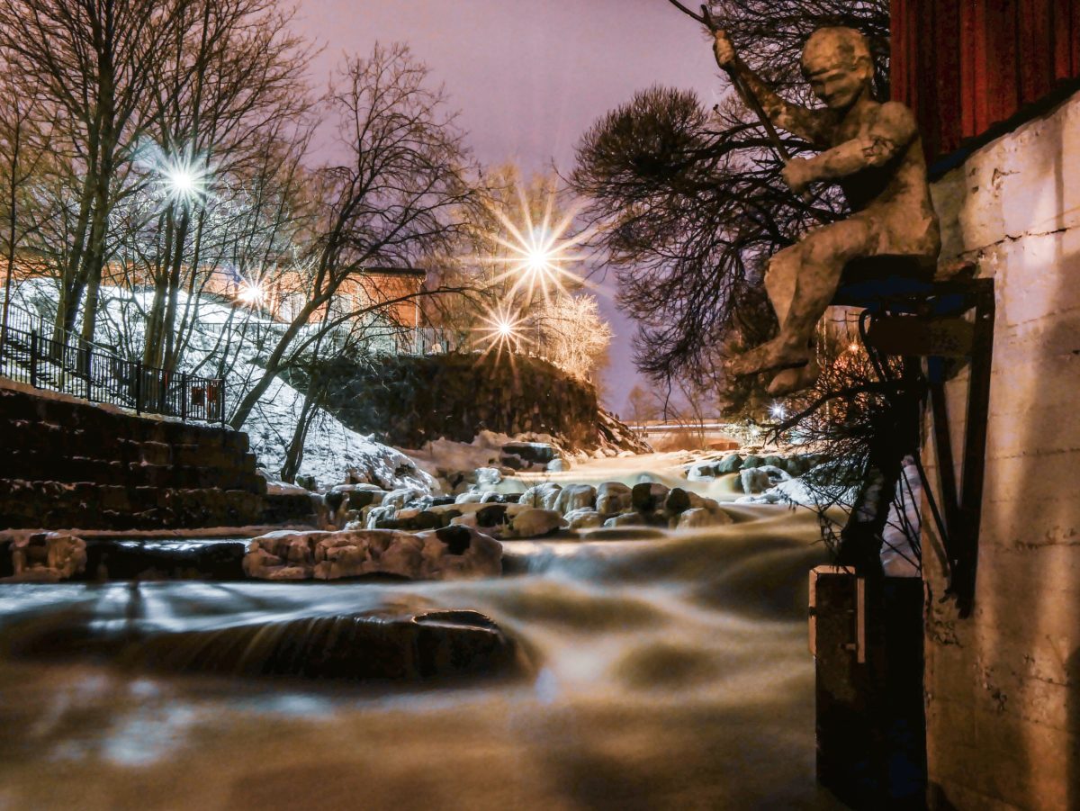 Kuva otettu Helsingin Vanhankaupunginkoskella. Kuvan nimi tulee kalastajapoikapatsaasta, joka vartioi koskea.