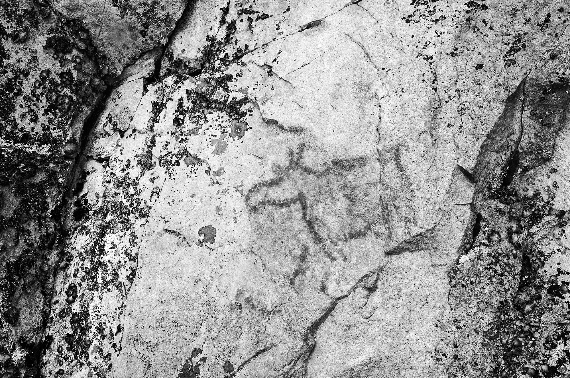 Kalliomaalausten hirvet ovat lähes poikkeuksetta sarvettomia.