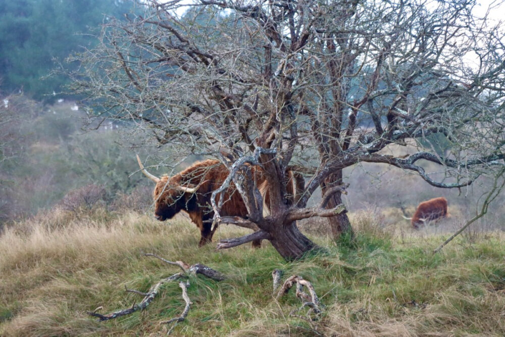 Reitti johtaa kohti hevoslaumaa. Ennen kuin tavoitamme ne, ohitamme dyynien rinteillä ylämaankarjaa, joka on laiduntanut alueellaa parikymmentä vuotta. Ne ovat tuttu näky Suomen kansallispuistojen ja muiden suojelualueiden perinnemaisemista, mutta tällaiseen dyynien kirjomaan ympäristöön laitettuna tuntuvat eksoottisilta. Toisin kuin Suomessa, täällä karja laiduntaa puolivillinä ympäri vuoden samoilla alueilla.