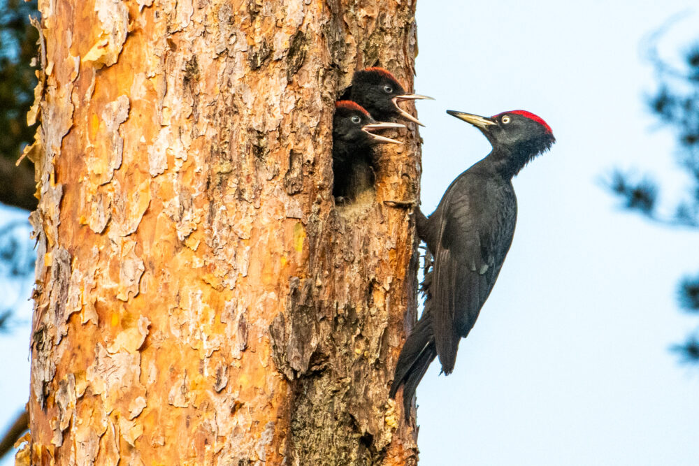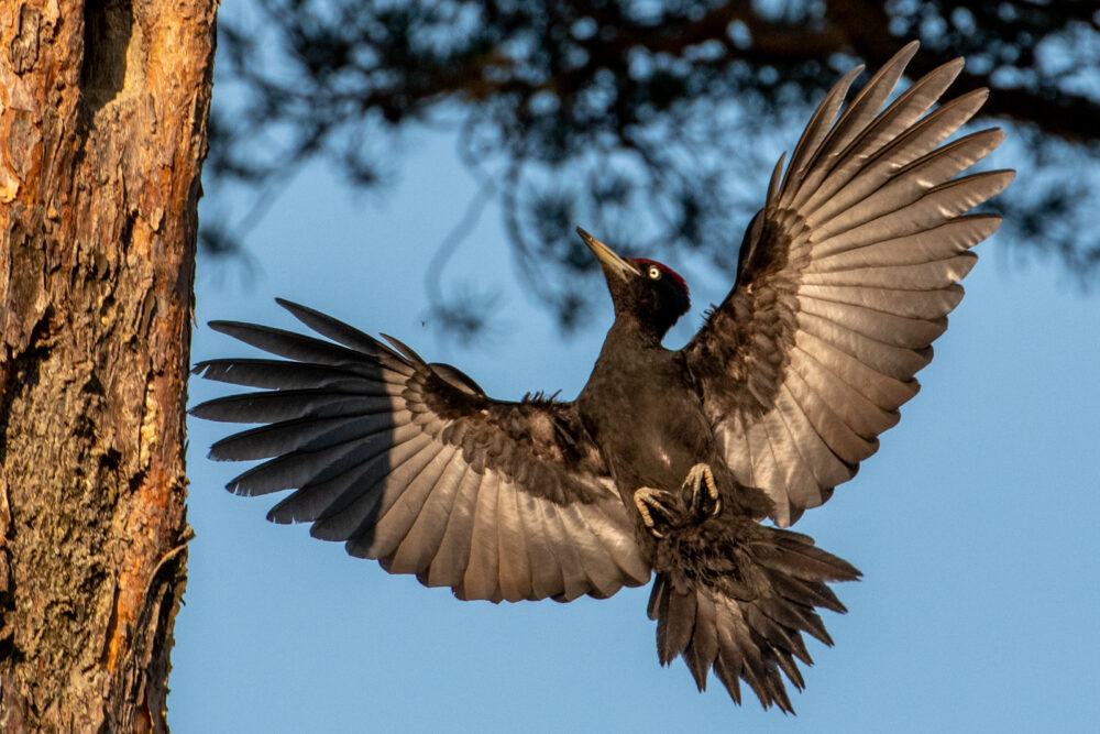 Viidennessä se paukauttaa vauhdikkaasti pesäpuun rungolle ja kuudennessa se ruokkii pesässään pian lentokykyiseksi ehtiviä poikasia.
