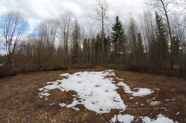 Tuleva kasvimaa kuvattuna 17.4.2015. Ystäväni lumi viipyy Harakankanpesässä pidempään kuin muualla Vihunkylän pelloilla. Kuva: Rainer Rajakallio