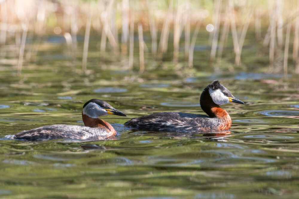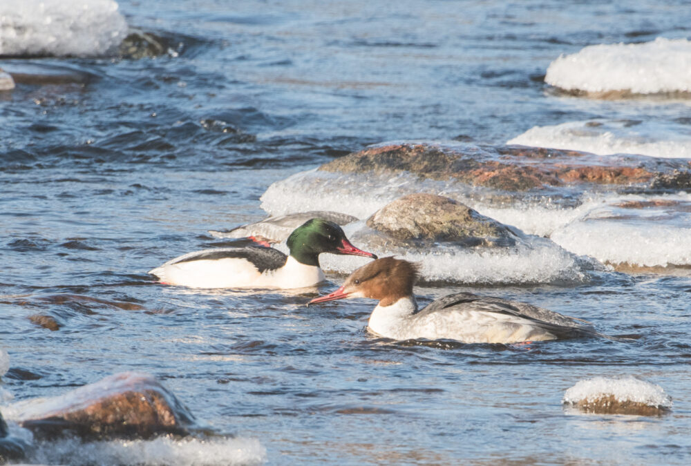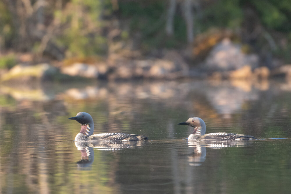 Tukkakoskelopariskunta kiertelee usein aivan lähellä rantaa.