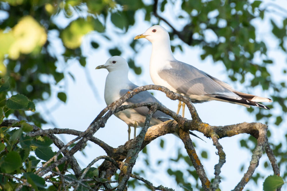 Kalalokki voi pesiä paitsi rantakivellä myös sopivassa puunhaarassa lähellä rantaa