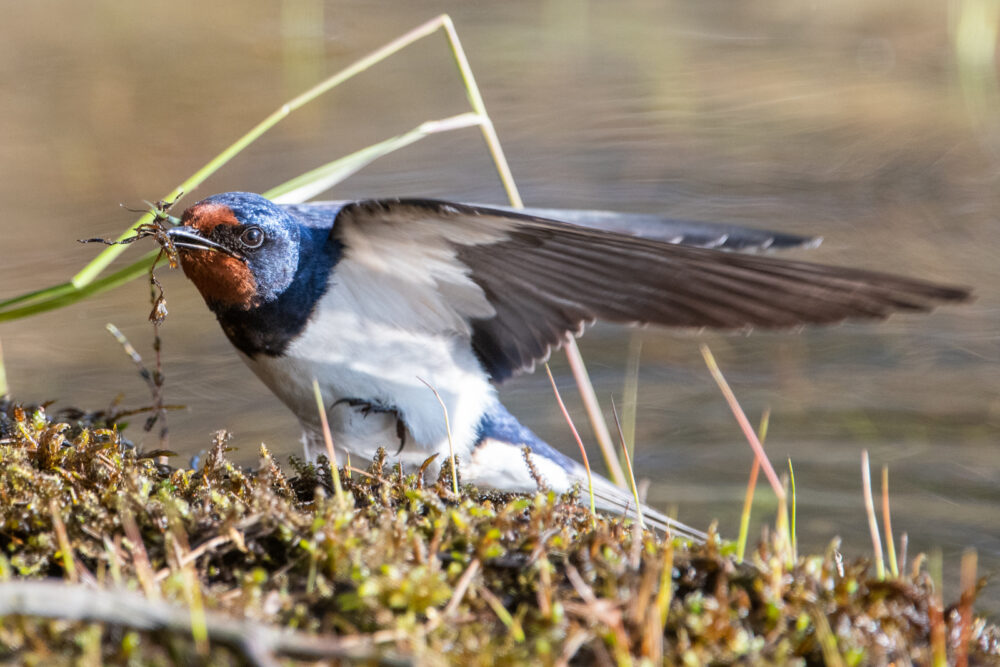 Haarapääsky hakemassa pesäaineksia rantaviivalta