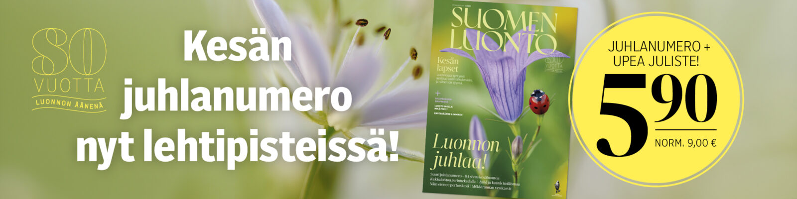 Suomen Luonnon upea ja runsas 80-vuotisjuhlanumero on ilmestynyt! Se löytyy lehtipisteistä kautta maan tarjoushintaan 5,90 € (norm. 9 €).