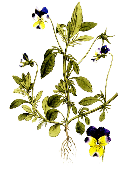 Tuntomerkit: Voimakkaan värinen kelta–valko–violetti-kukka.