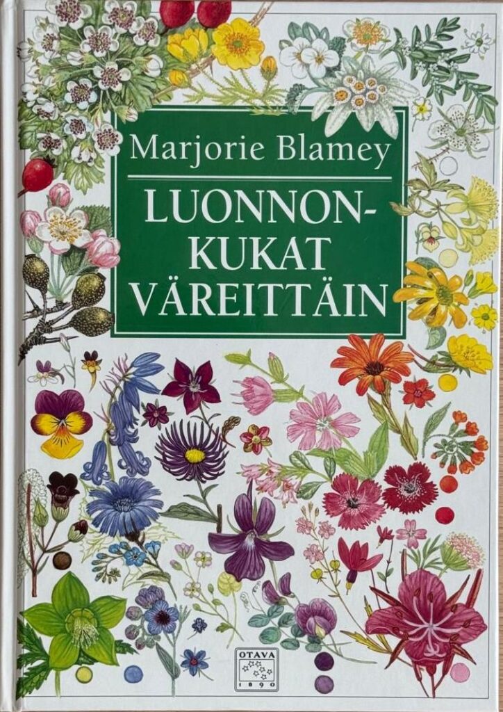 Luonnonkukat väreittäin (Otava 1998) on rakas apuri retkillä, mökillä ja kuvauksissa — aina kun eteen tulee kasvi, jonka haluan tunnistaa. Kirjassa kukat on jaoteltu värin mukaan, mikä tekee etsimisestä helppoa.