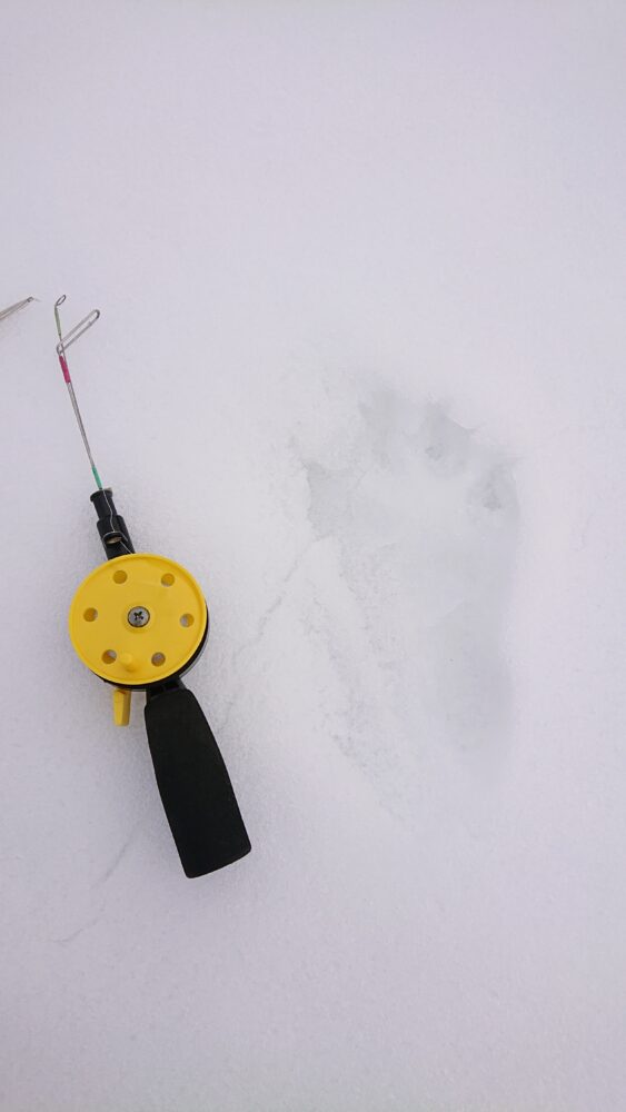 Ilves laukannut jäätä pitkin. Epäsymmetrinen tassun anturoiden painallus ja kynsiä ei näy kuin muutamassa jäljessä hennosti. Kovalla alustalla ilves saattaa ottaa kynsillä alusta tukea, jolloin jäljessä näkyy terävä kynnen painallus. Lukijan kuva.