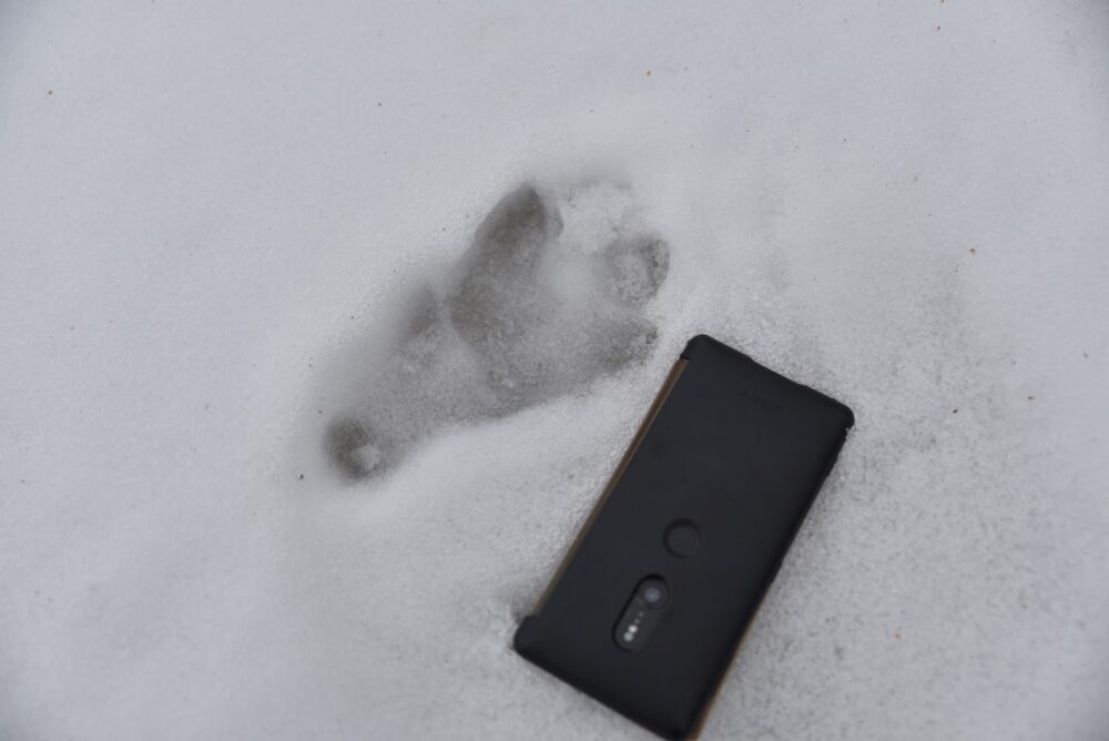 Rusakon jälkijono. Jälkijono on 1+1 pientä peräkkäin 2 isoa rinnakkain, mikä on tyypillinen jäniseläimen eli hyppivän eläimen jättämän jälkijono. Metsäjäniksellä etutassu ovat suorassa linjassa, kun rusakolla ne hieman harottavat keskilinjasta. Lisäksi hitaassa laukassa metsäjäniksen etukäpälien jäljet ovat lähempänä takajälkiä kun kookkaammalla rusakolla eteneminen on hieman vauhdikkaampaa, jolloin etutassujen painallukset sijaitsevat kauempana takatassuista. Lisäksi jäljen muoto on pitkulainen kun metsäjäniksellä se on pyöreämpi. Kuvat: Sakari Kähärä