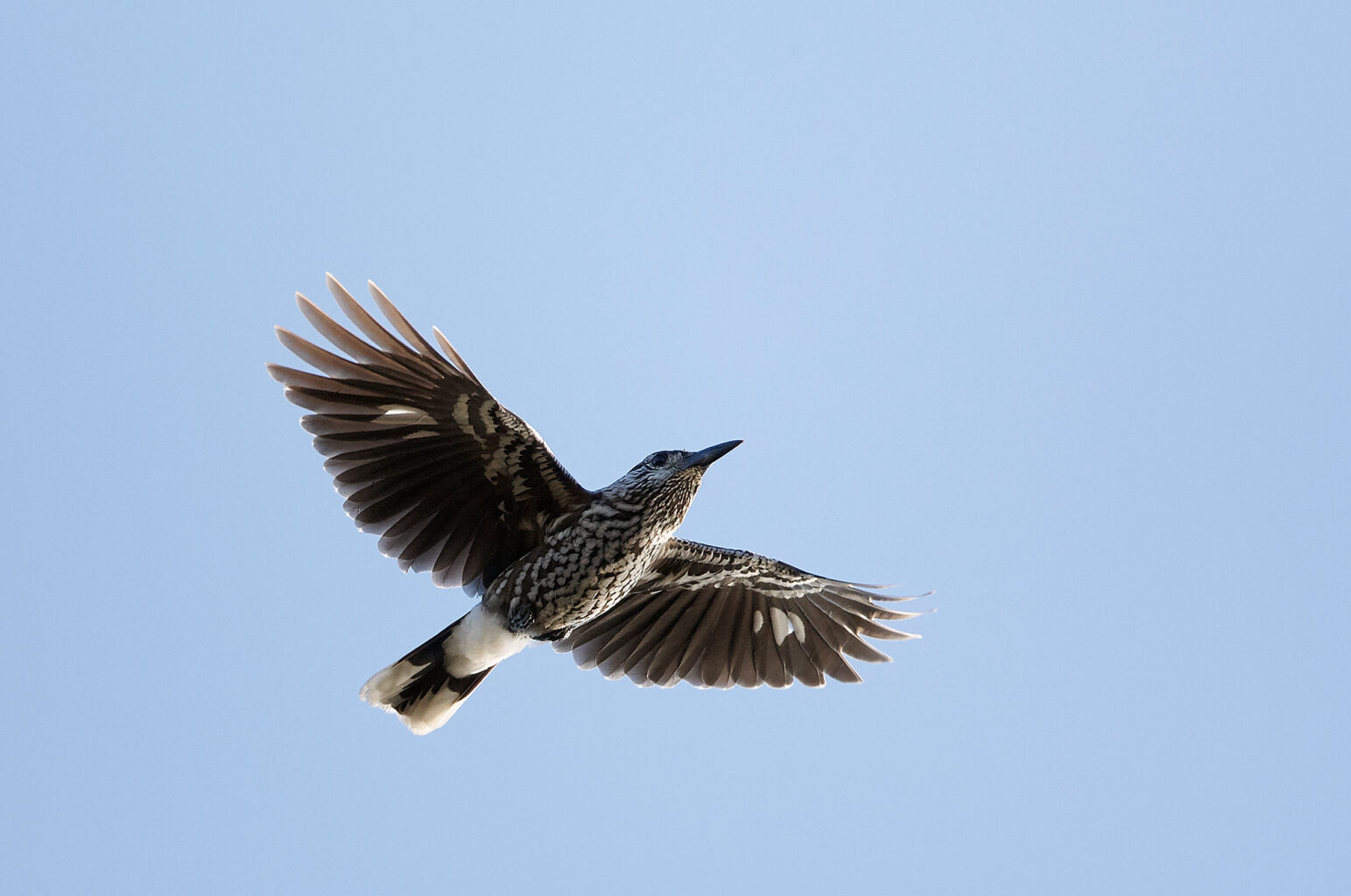 Tuntomerkit: Valkotäpläinen, tummanruskea, valkoinen alaperä, paksu nokka.