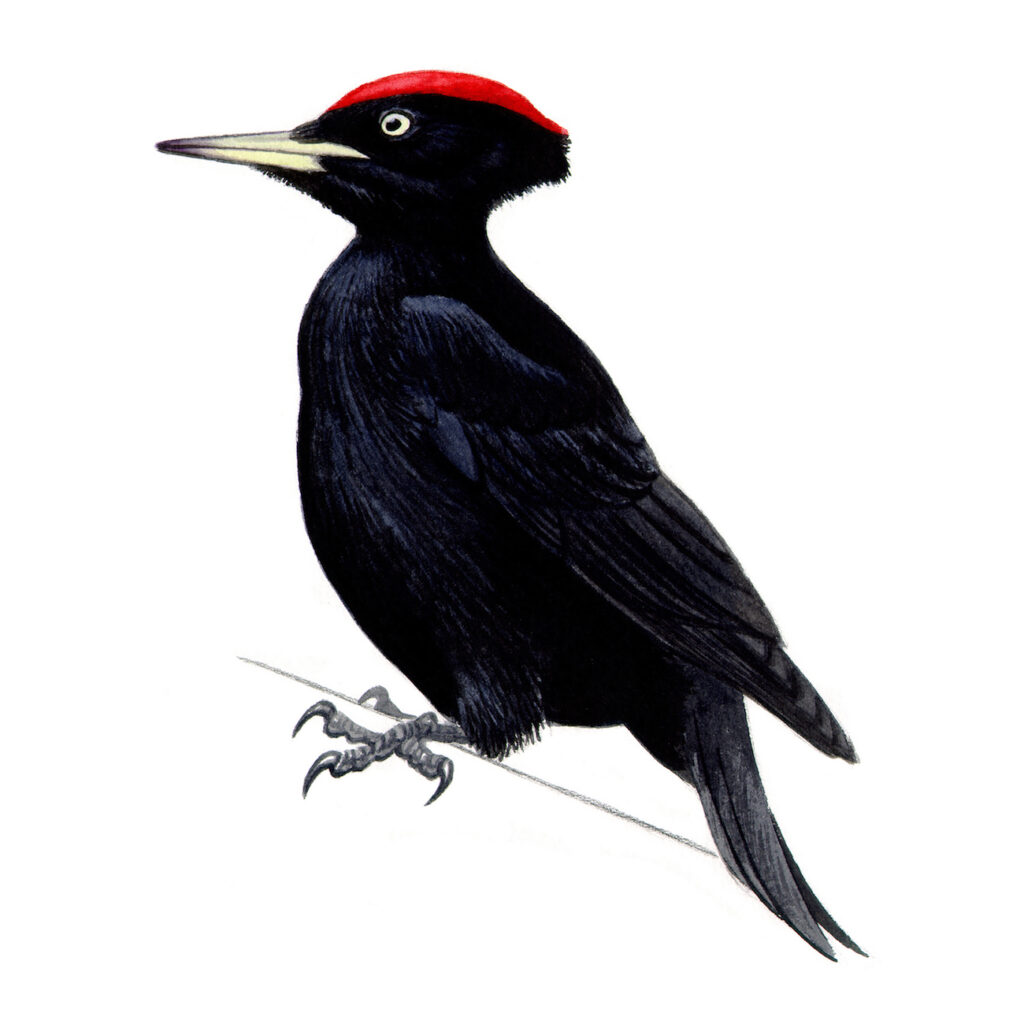 Tuntomerkit: Musta tikka. Variksen kokoluokkaa, pituus 40–45 senttiä. Koiraan päälaki punainen, naaraalla vain takaraivo.