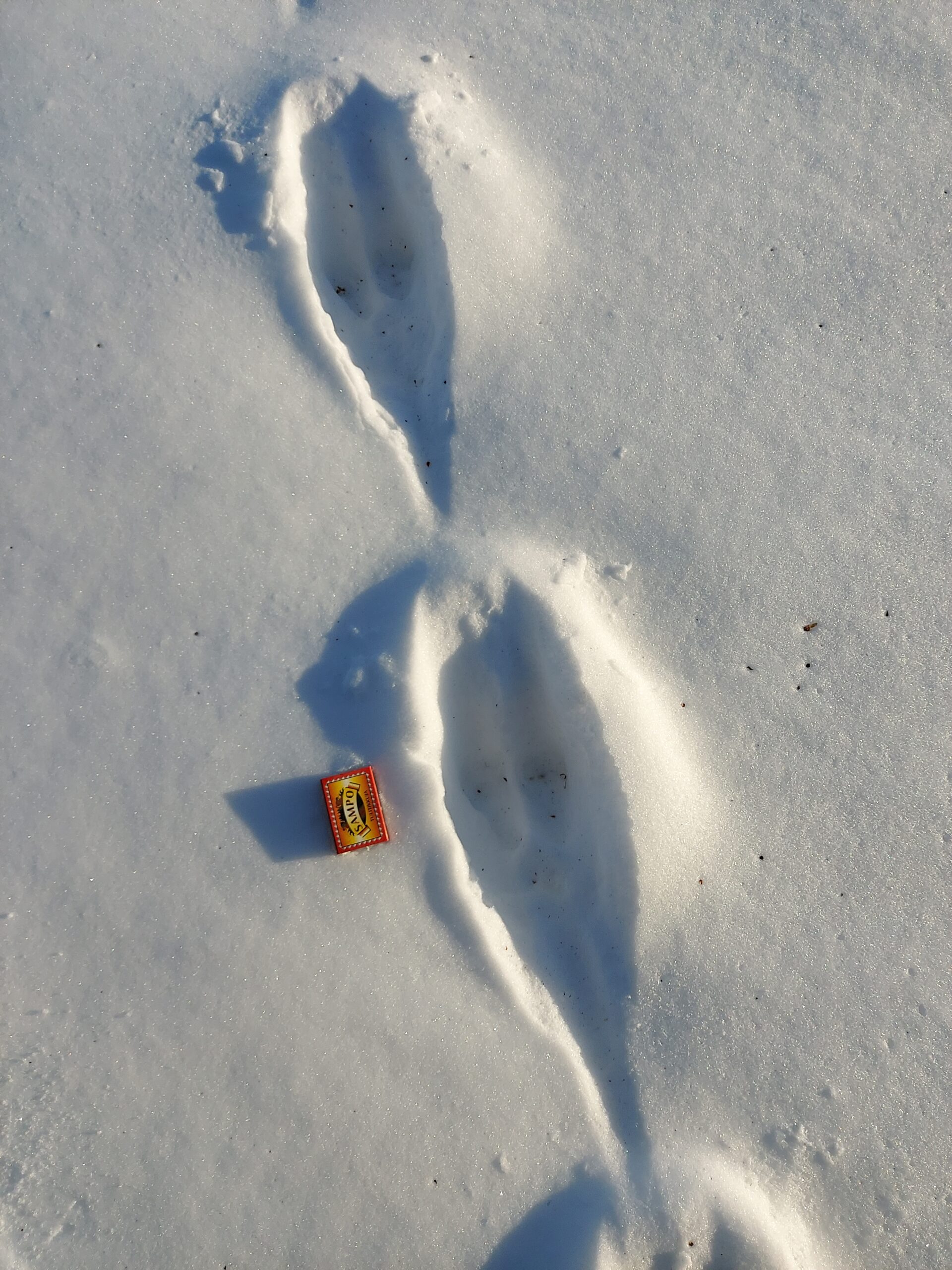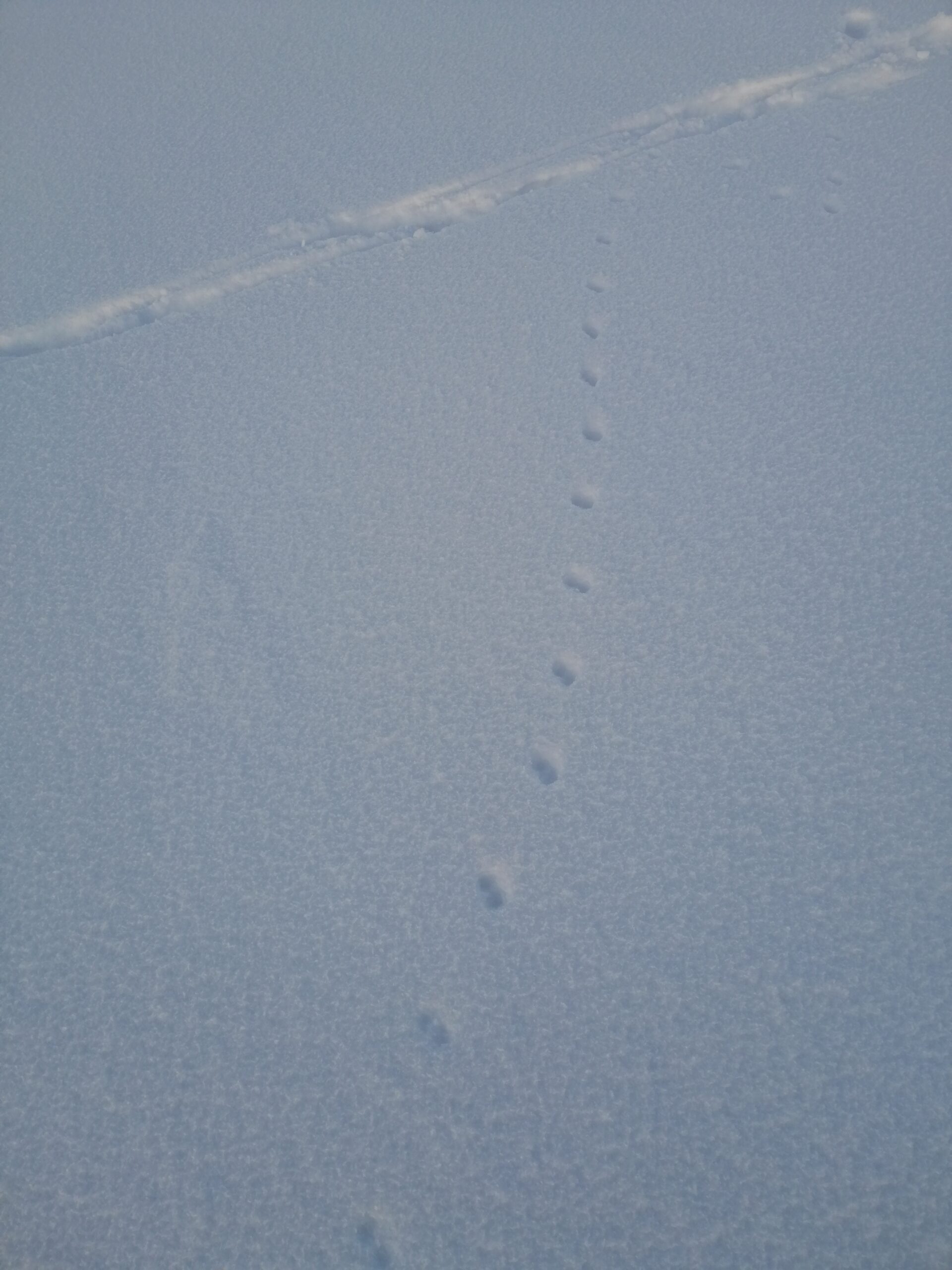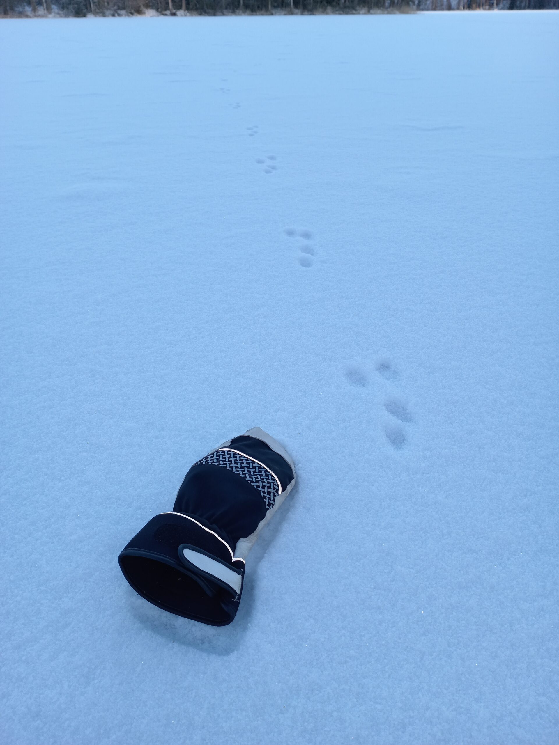 Näyttävät lumikon jäljiltä, mutta saattavat olla myös pienen kärpän, kun jäljen mitta puuttuu. Kuva: Emmi-Orvokki Hälikkä