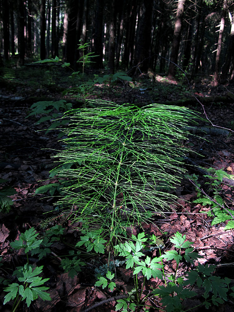 ”Ja tässä on toinen korte: metsäkorte”, Väre huikkaa. ”Se on vähän rotevampi ja isompi kuin lehtokorte. Hyvä tuntomerkki ovat haarat, jotka haarovat”, saan opastusta. Totta, metsäkorte näyttää ihan pieneltä kuuselta verrattuna lehtokortteeseen. Myös metsäkortteella on vaaleanruskeat kevätversot, joihin kasvaa vihertyviä haaroja itiöiden kypsyttyä.