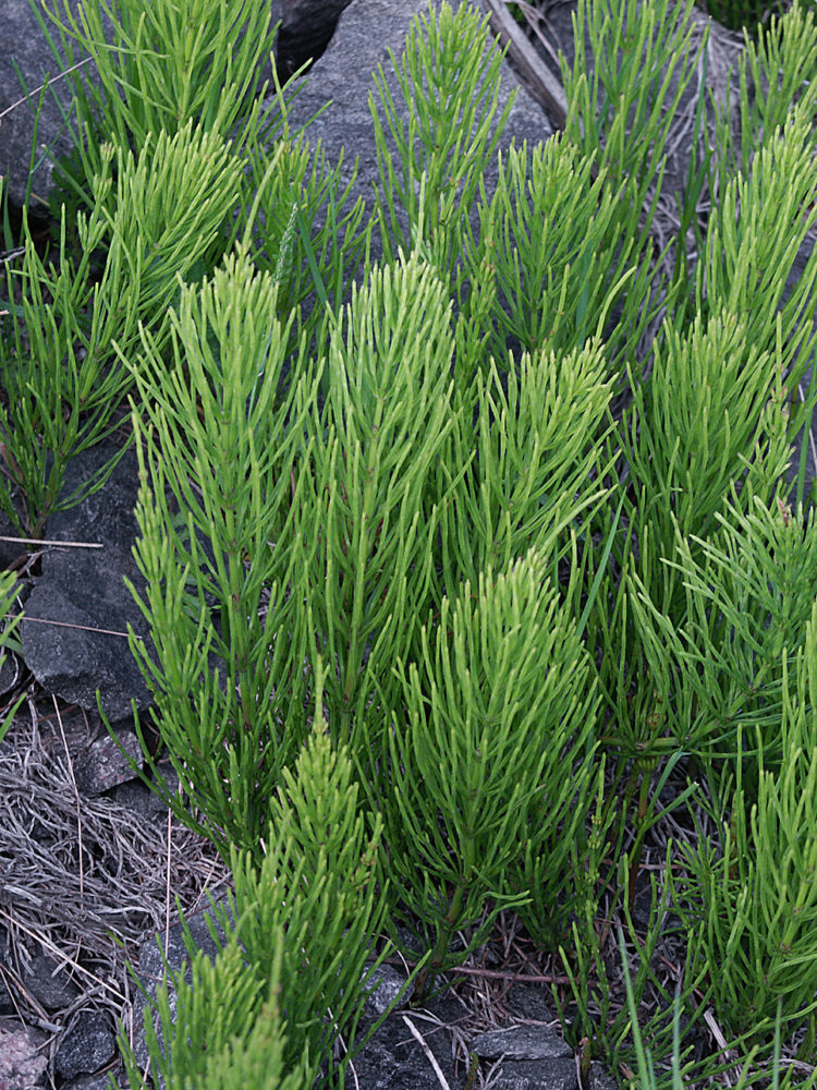 ”Ja tässä on toinen korte: metsäkorte”, Väre huikkaa. ”Se on vähän rotevampi ja isompi kuin lehtokorte. Hyvä tuntomerkki ovat haarat, jotka haarovat”, saan opastusta. Totta, metsäkorte näyttää ihan pieneltä kuuselta verrattuna lehtokortteeseen. Myös metsäkortteella on vaaleanruskeat kevätversot, joihin kasvaa vihertyviä haaroja itiöiden kypsyttyä.