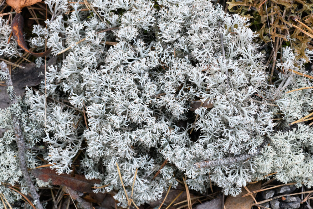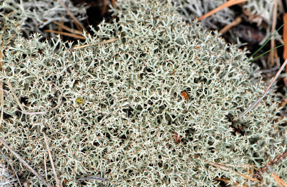 Kylki kyljessä kasvavat harmaaporonjäkälä sekä maamme toiseksi yleisin poronjäkälälaji, valkoporonjäkälä.