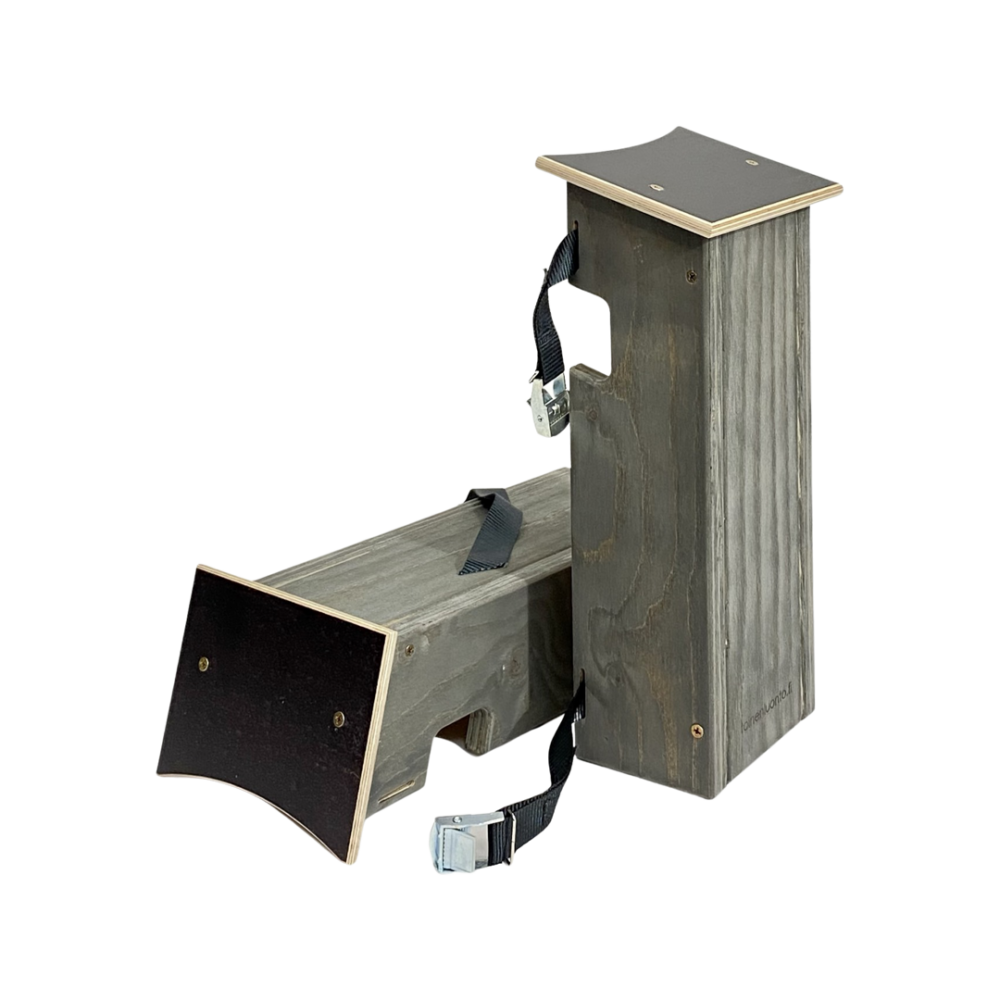 Puulistat pöntön tukemiseksi puunrunkoa vasten, pikalukkovyö ripustamiseen ja suojapelti.