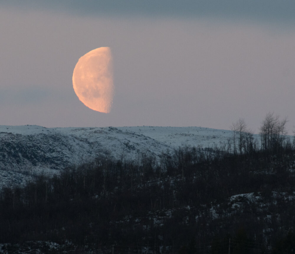 Täysi kuu paistaa taas ensi viikolla aivan helmikuun alussa ja seuraava maaliskuun alussa pilvettöminä päivinä. Nyt kuu jo näkyy ja valaisee puolikkaana. Kuutamo voi tarjota hyviä tunnelma- ja pöllönkuunteluretkiä.
