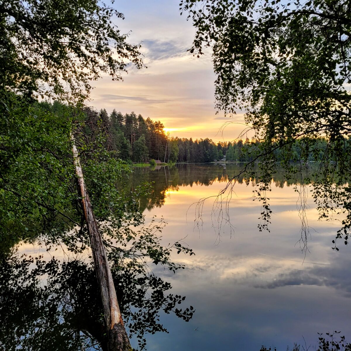 Oli sunnuntai aamu 28.7. 24 ja kello oli 5.38. Aurinko nousi Hollolan Vähä-Tiilijärven rannalla.