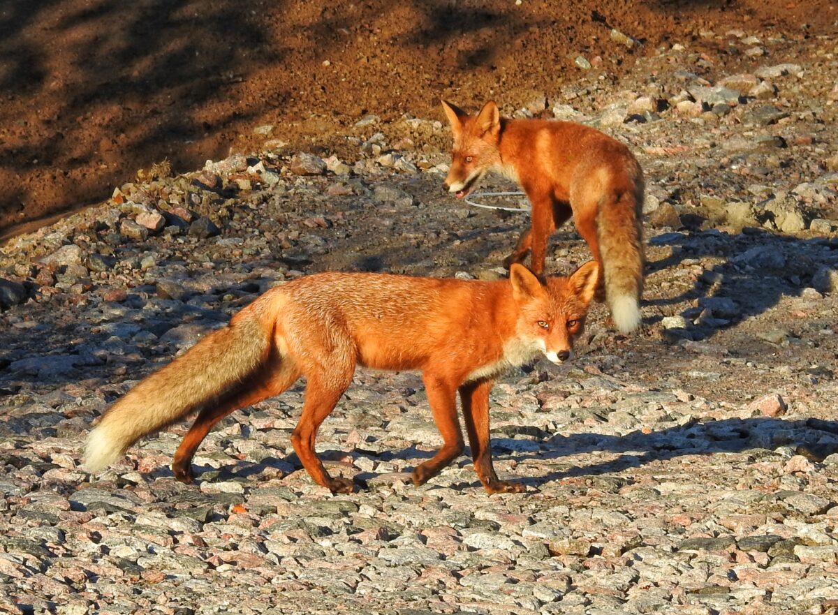 Aamuisella kävelylläni törmäsin kahteen kettuun, jotka myöskin näyttivät olevan aamukävelyllä.