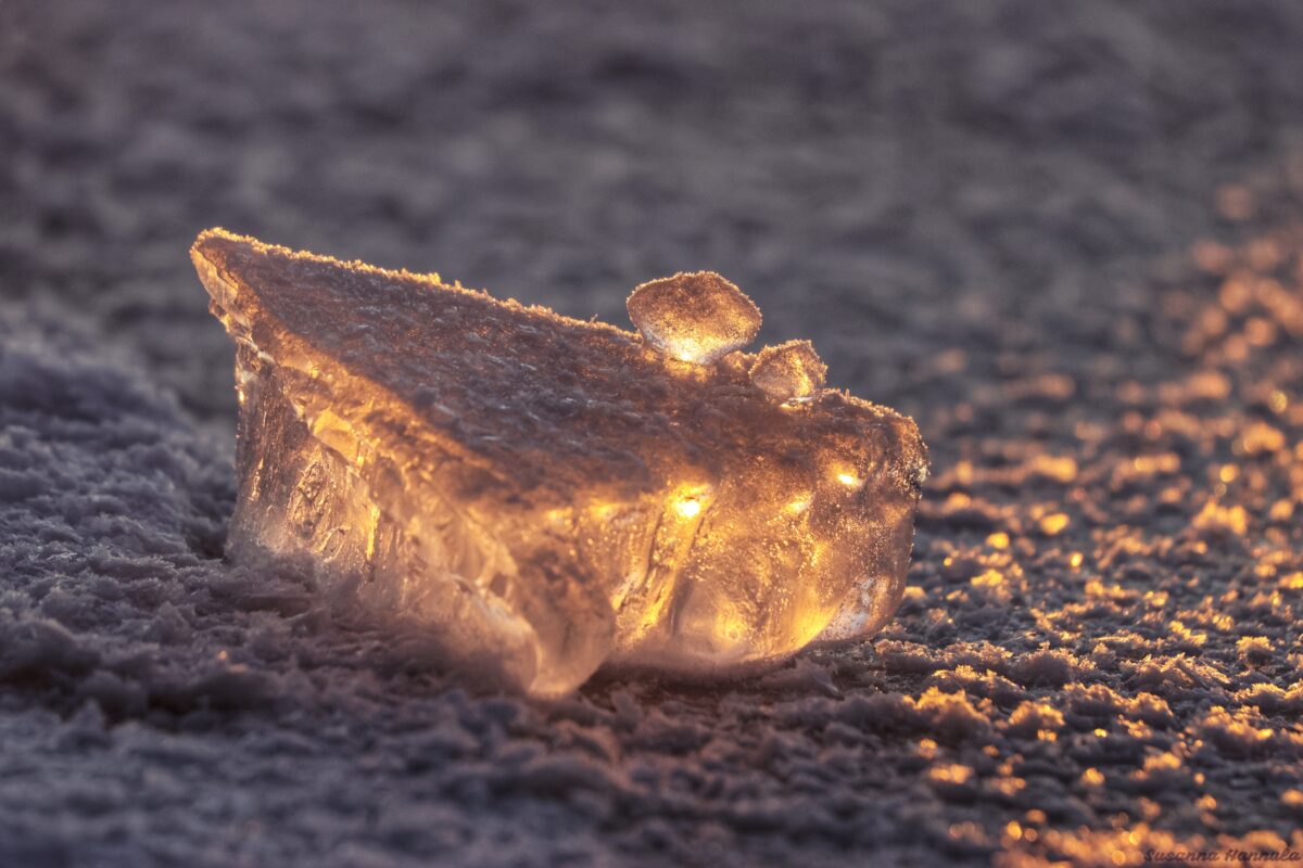 Aamuaurongon säteet osuivat jäänpalaan ja saivat sen loistamaan kuin timantti