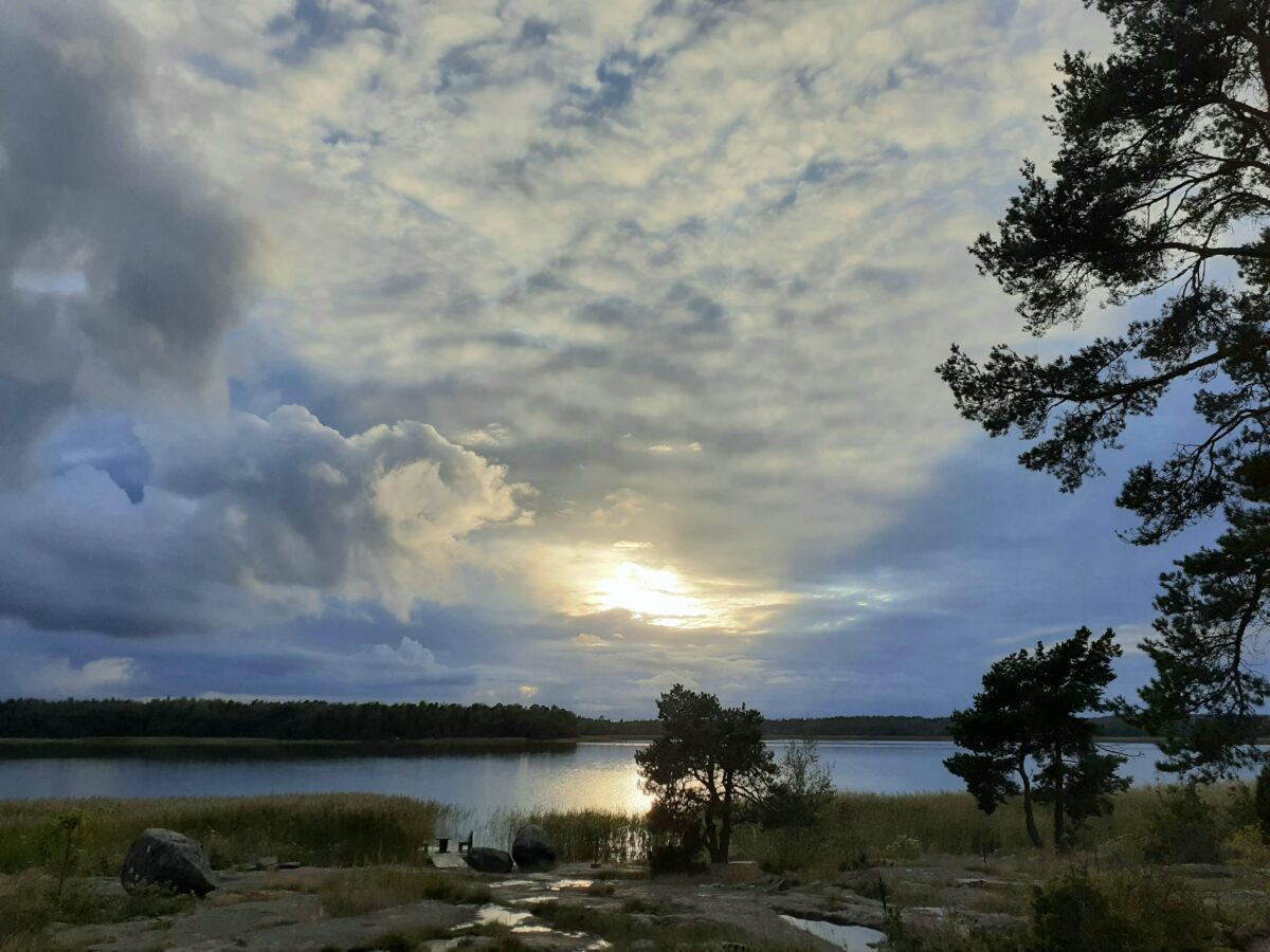 Syyskuisena iltana Ahvenanmaalla aurinko piiloutui laskiessaan pilvien taakse, ja loi tunnelmallisen valaistuksen.