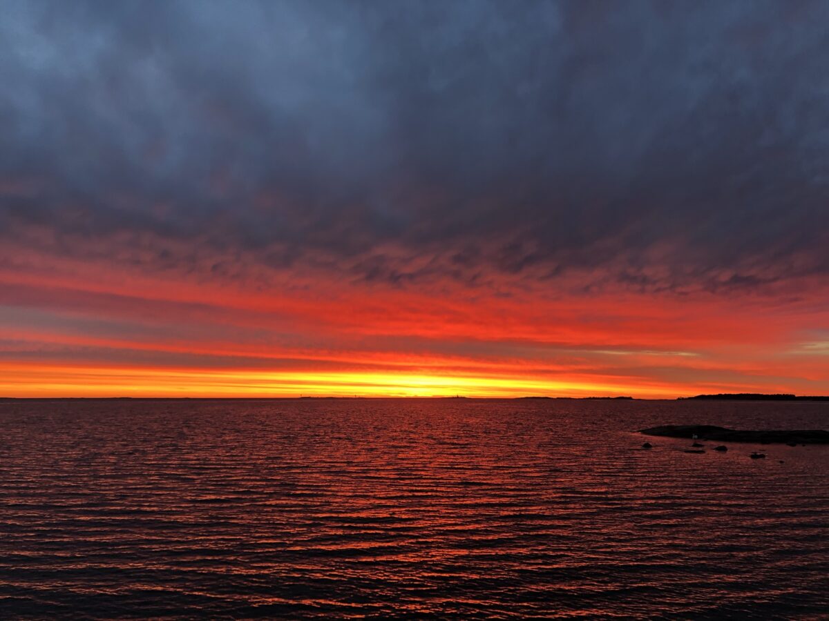 Toukokuussa aurinko värjäsi taivaan punaiseksi, ja sain nauttia upeista väreistä ja hetkistä mökillä länsirannikolla. Tuossa meren rannalla kalliolla on yksi lempipaikkani, siinä on hyvä istuskella ja tuijotella ulapalle, tarkkailla maisemaa ja ihmetellä maailmaa.