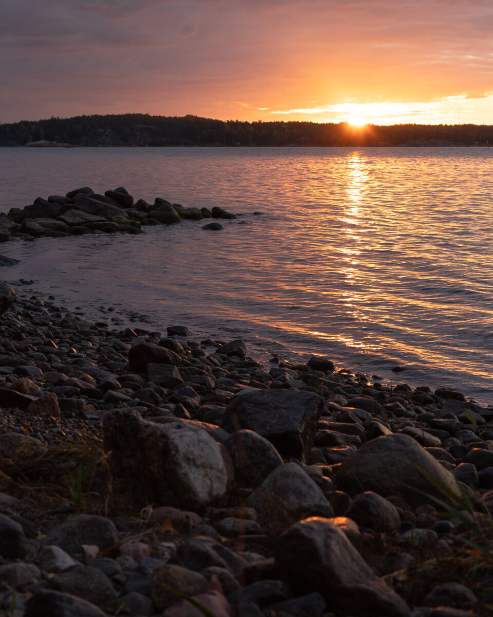 2024 Lokakuun alkupuolella Ruissalossa. Ehdin juuri paikalle veden ääreen kun aurinko alkoi nousta puurajan takaa ja sain nauttia tästä hetkestä, lempeitä veden ääniä kuunnellen.