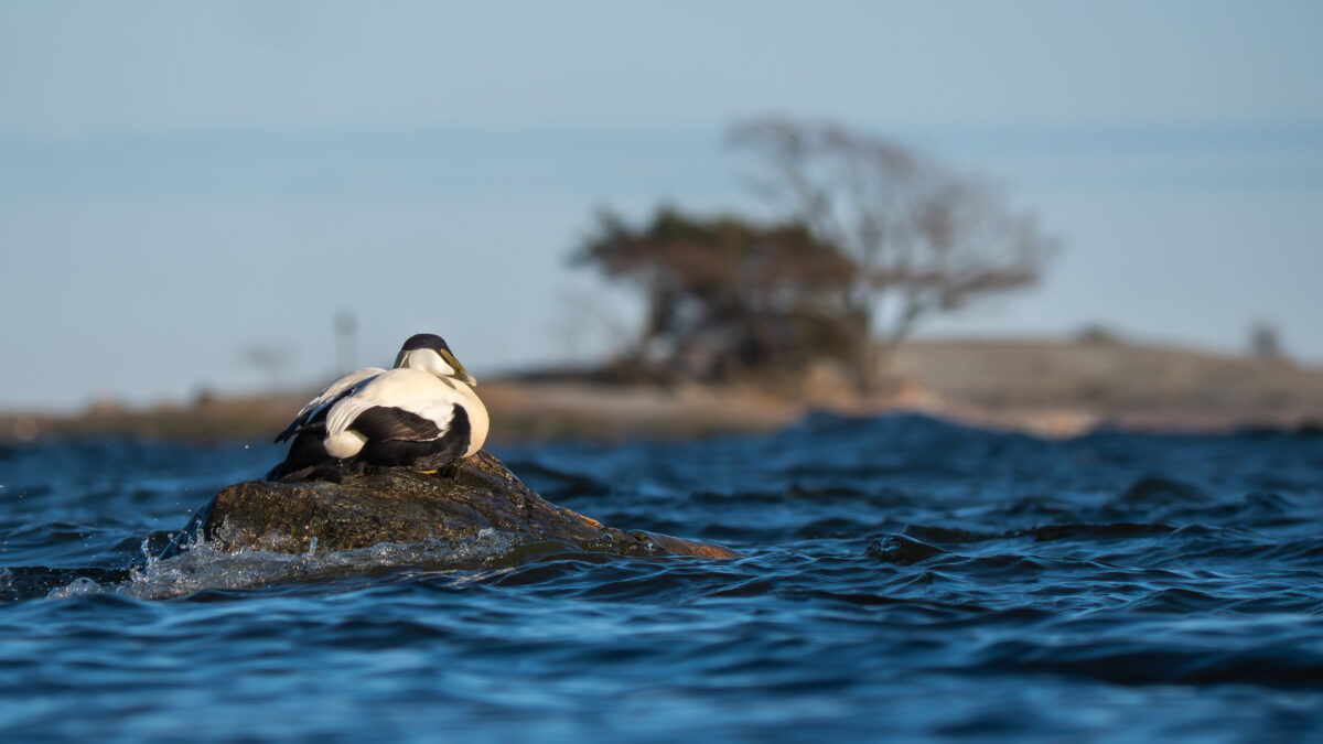 Olin kuvaamassa keväällä haahkoja. Tämä haahka oli erillään kaikista muista haahkoista omissa oloissaan. Päätin sitten ottaa kuvan haahkasta, koska se poseerasi täydellisesti Itämeren upeassa maisemassa.
