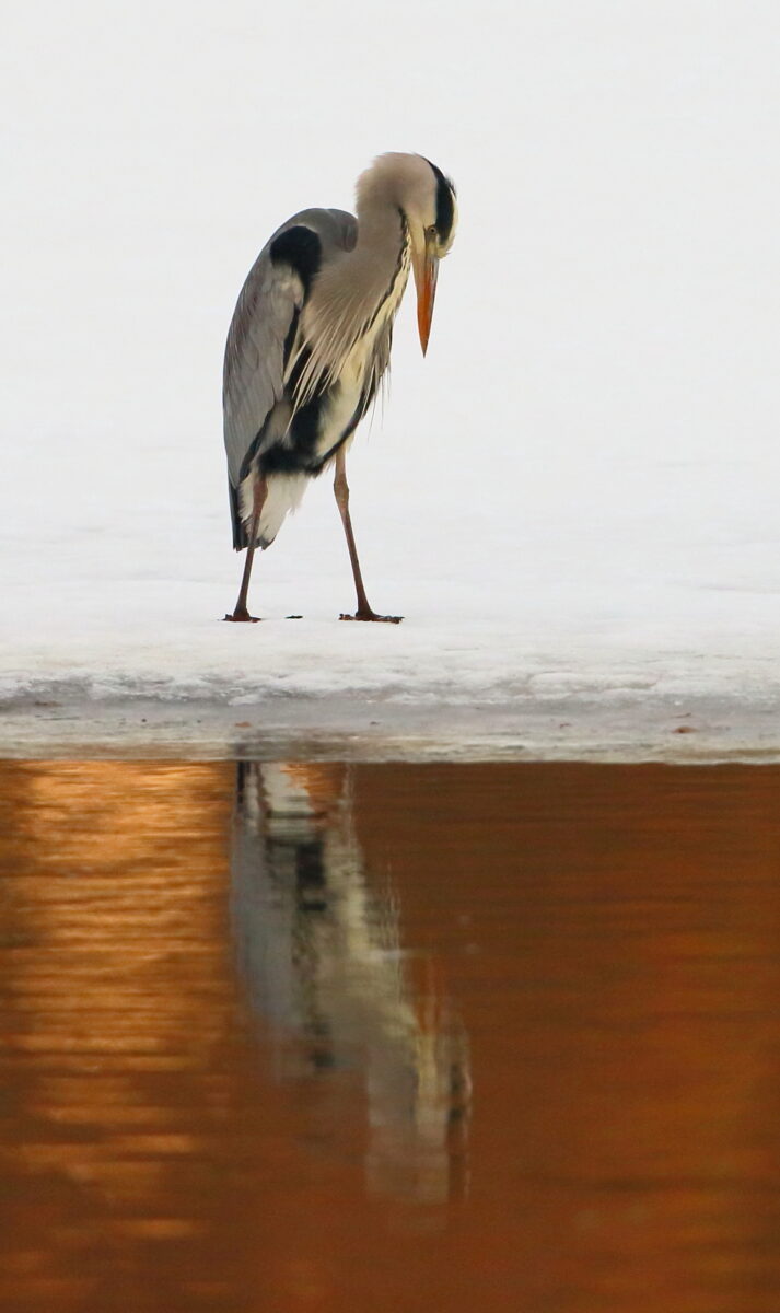 Kuva otettu tammikuussa, laskevan auringon valo heijastuu veteen.