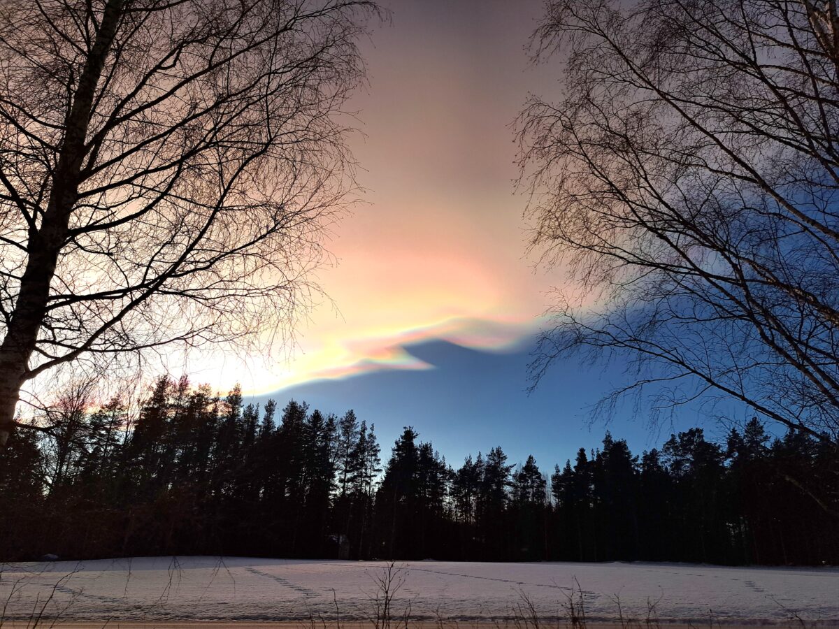 Oli jo aika myöhäinen ilta syntymäpäivänäni tammikuun 18. päivä tänä vuonna, kun aviomieheni huomasi helmiäispilven ulkona. Se näytti upealta hämärässä. Menin kiireesti valokuvaamaan tätä itselleni harvinaisempaa ilmiötä.