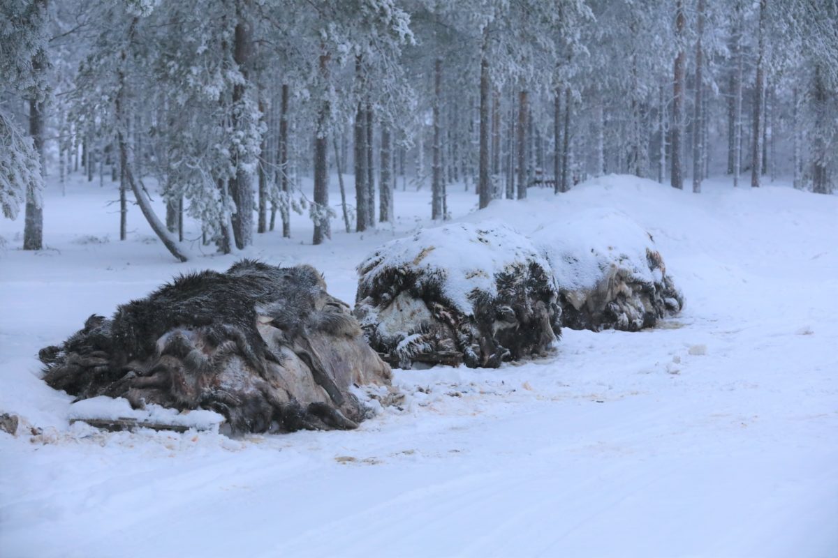hirvelle , joista olisi tullut iso pino hirventaljoja.