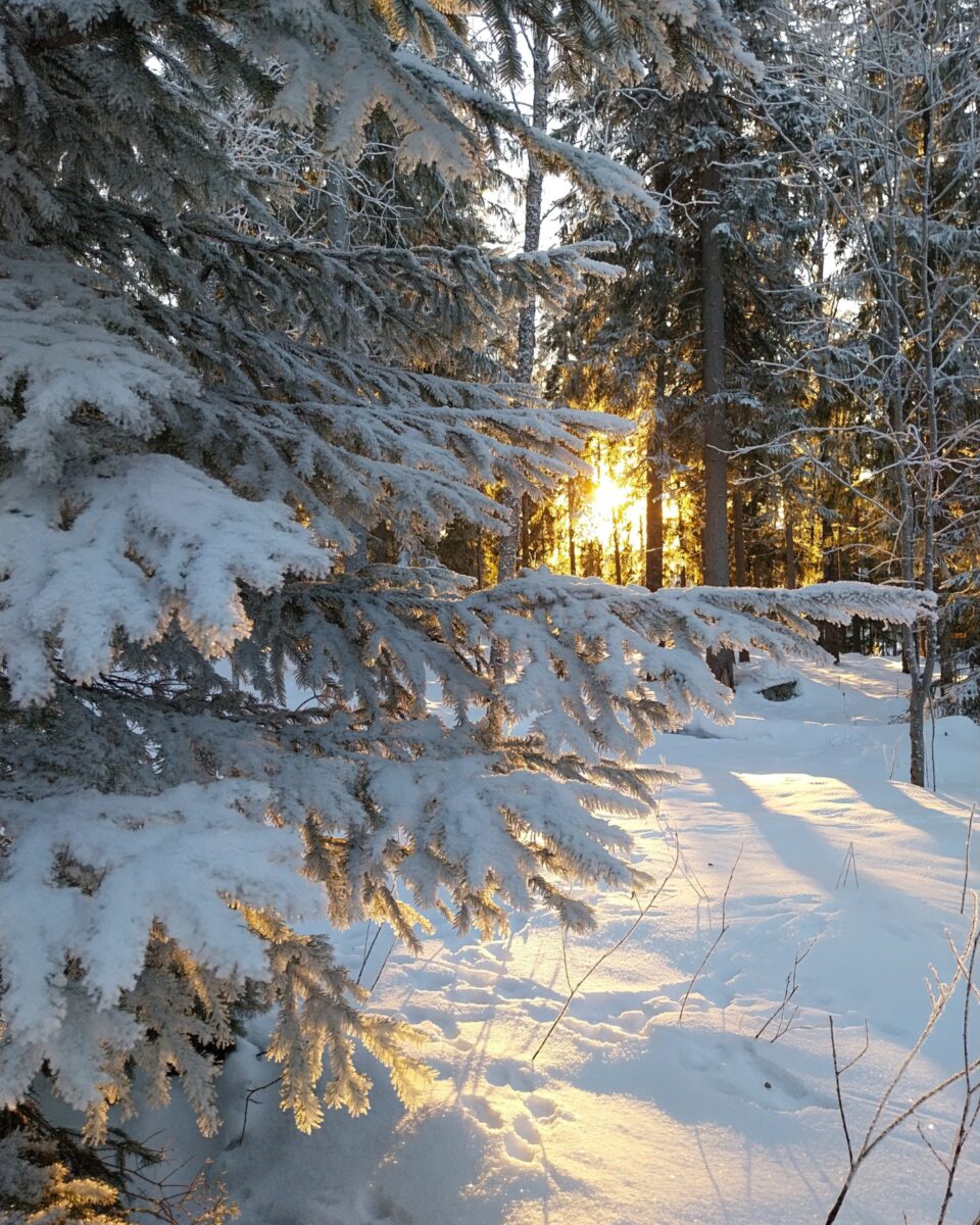 Lähimetsästä otettu kuva viikolla 7 unelma näkymästä Huhtasuolla.