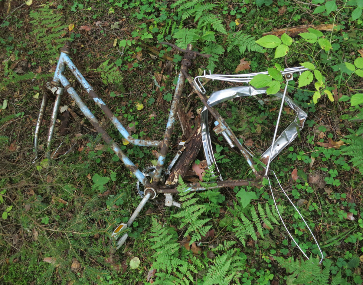 Tämä polkupyörä on ollut metsässä jo hyvän aikaa.