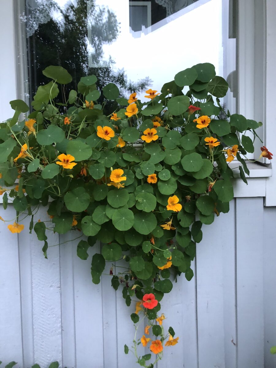 Nämä kukat keräsin heinäkuun lopussa kaupan roskalavalta ja kasasin pitkään kukkapurkkiin. Kastelin, kasteli, kastelin ja tulos on 💚.