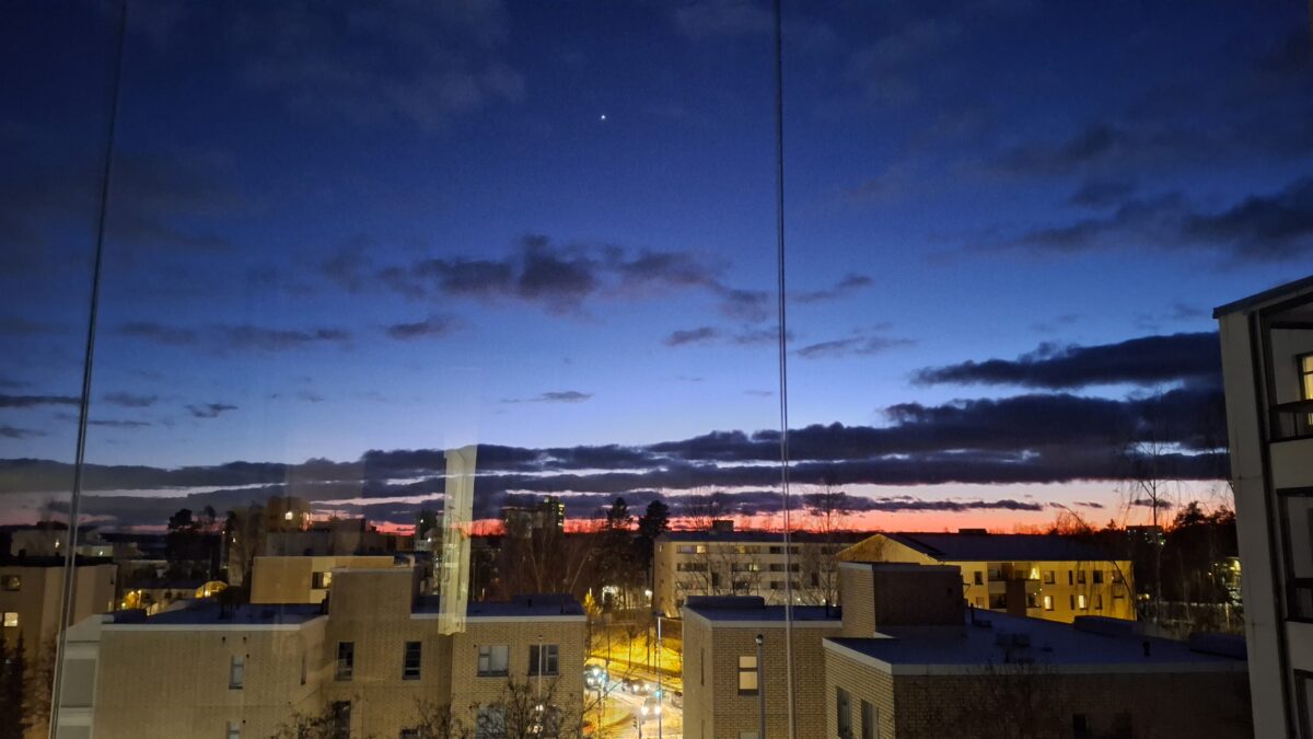 Iltaruskon parvekkeeltani 6. kerroksessa kuvasin kännykällä helmikuussa 2025.