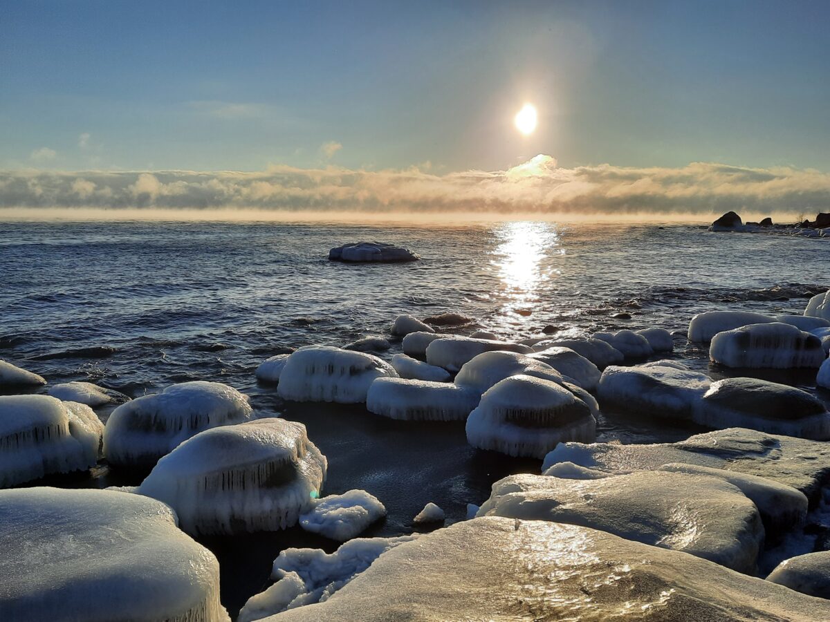 Loppuvuoden 2021 kireä pakkaspäivä Emäsalossa. Ihanat kivet ja merisavu.