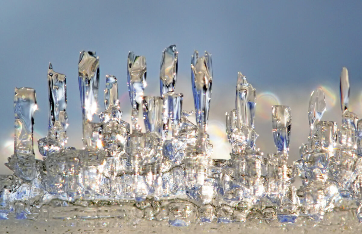 Makrokuva pienistä jäämuodostelmista.