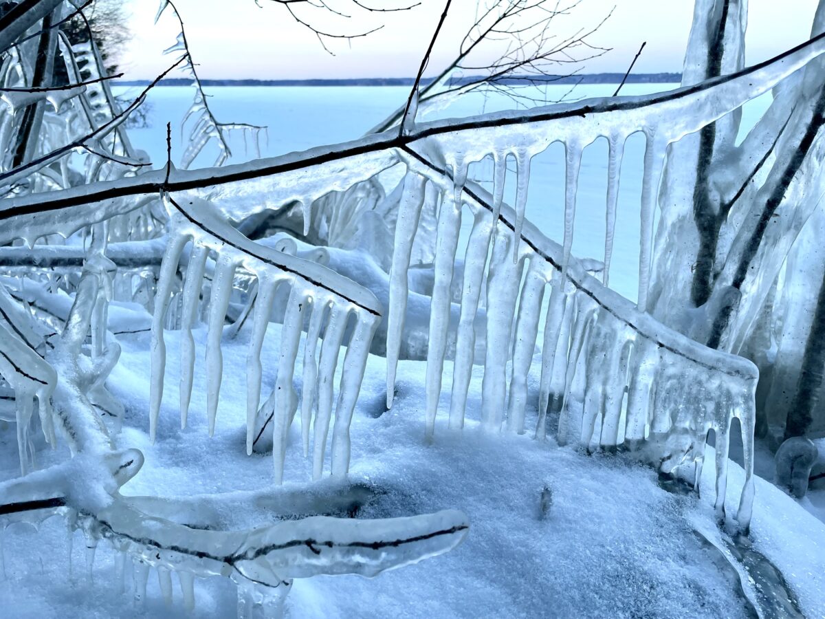 Uudenvuoden myrsky 2026 oli jäätänyt Kyrösjärven rannat, ja seuraavana yönä myös järvi jäätyi.