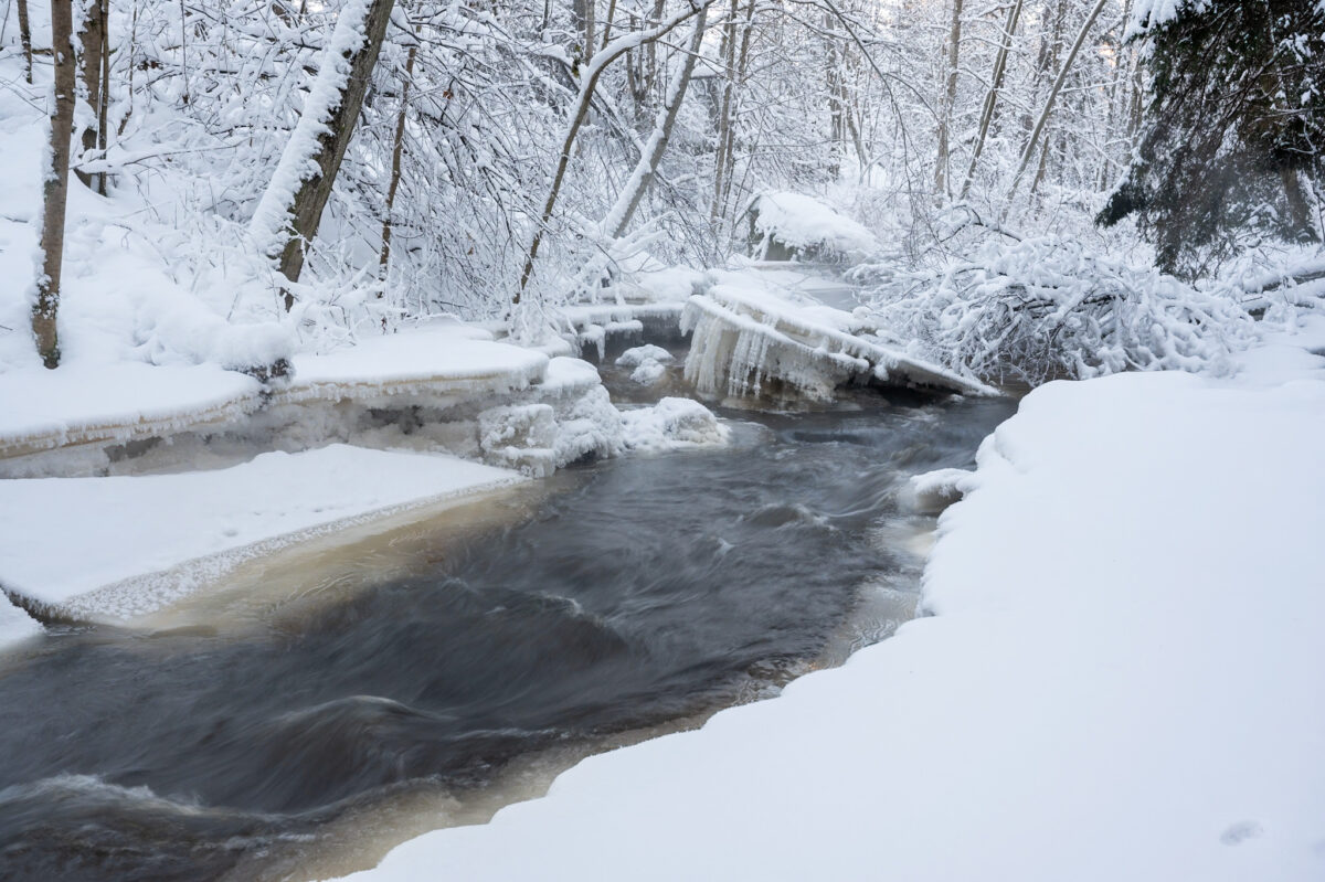 Kova pakkaset alku vuodessa ovat jäätynyt Espoon Glimsinjoki. Voimakkaan virtaa pitää jotkut kohdat auki ja siellä muodostui kiva jäänmuodestelmat.