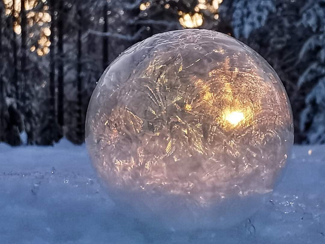 Pakkaspäivänä on kiva puhallella saippuakuplia, ne jäätyvät kauniisti ja aina tulee uniikki kuvio ❤️