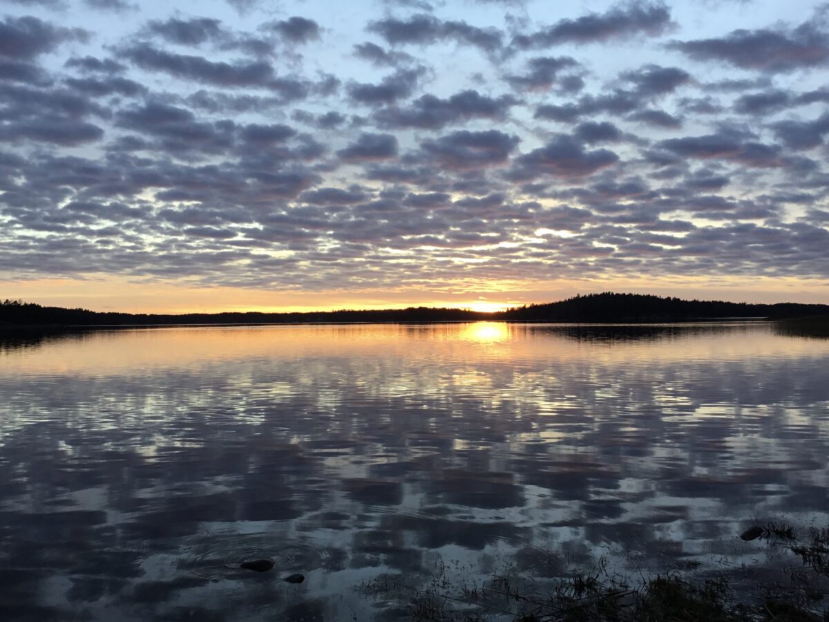 24.12 2021 Houtskari . kylmenevä , tyyni , jäitä muodostava meri ja erikoiset pilvet taivaalla heijastuvat ohueeseen jääpeitteeseen .