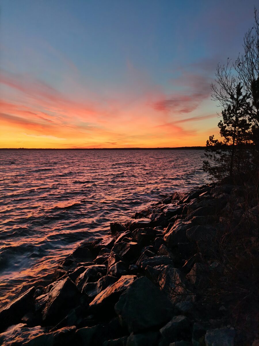 Kuva on otettu Pyhäselän rannasta 7.12.2020. Ranta vain on hyvä paikka olla. Auringonlasku näyttää kaikkein parhaalle rannalla, sinne usein suuntaankin puhelimella kuvia ottamaan ja nauttimaan näystä.