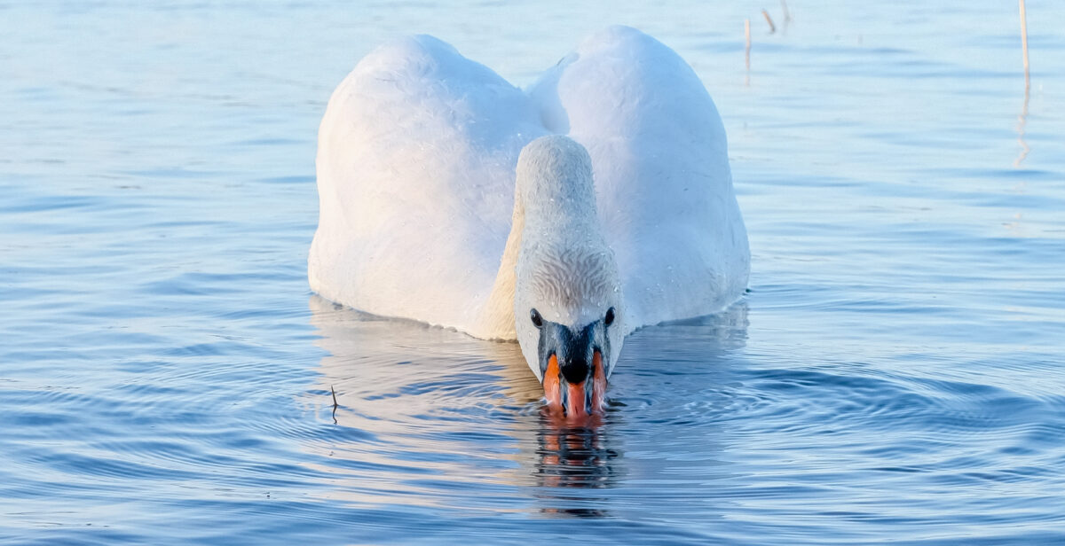 Joutsen aamu-uinnilla