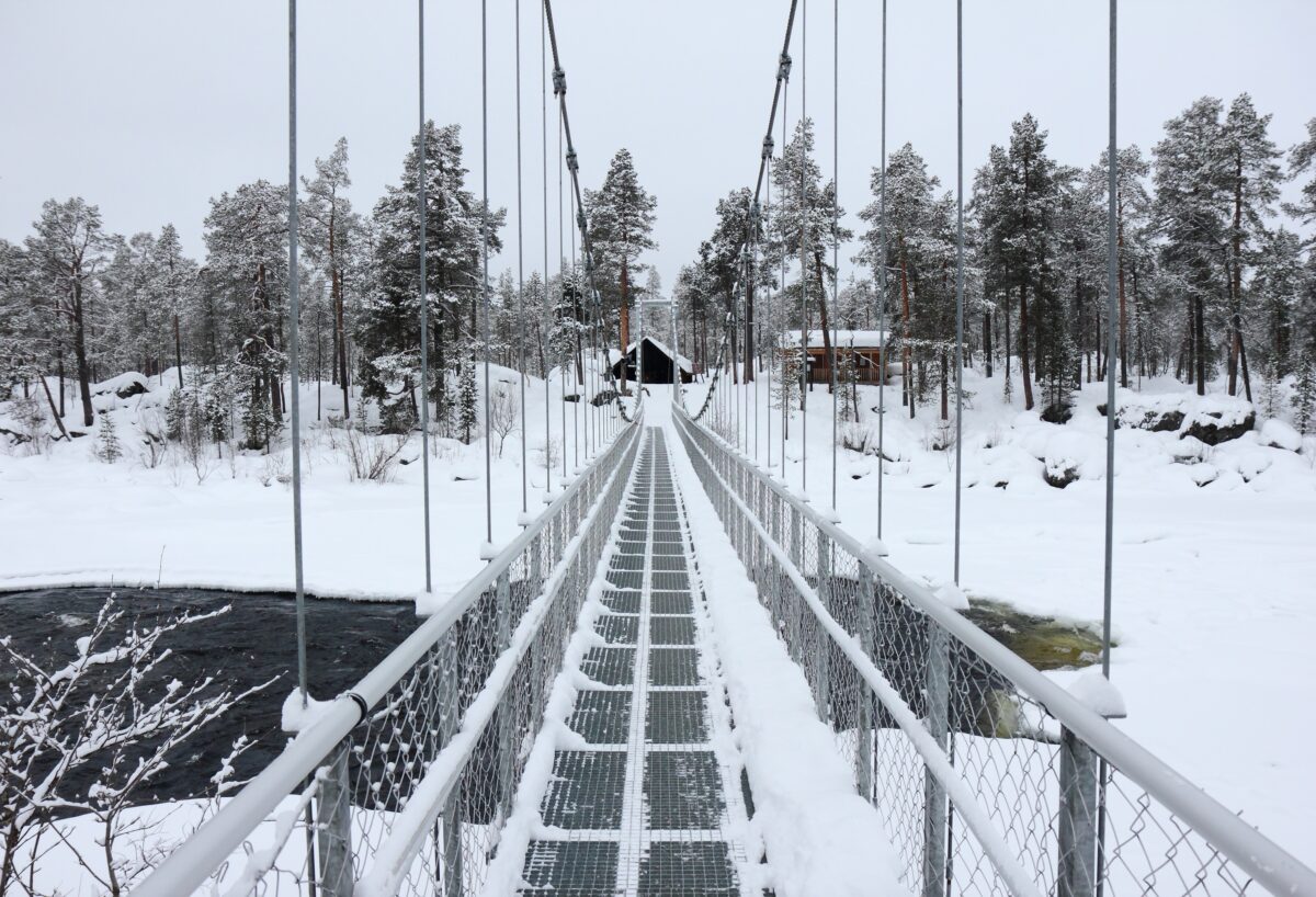 Riippusiltaa pitkin pääsee taukopaikalle levähtämään ja nauttimaan luonnon rauhasta.
