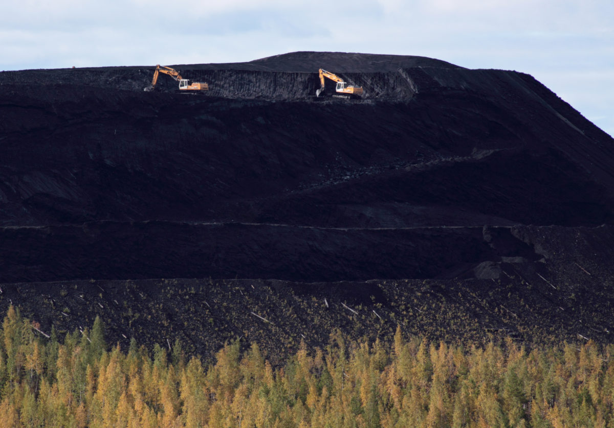 Kaivinkoneet tuhkavuorella Itä-Virumaalla, Virossa.