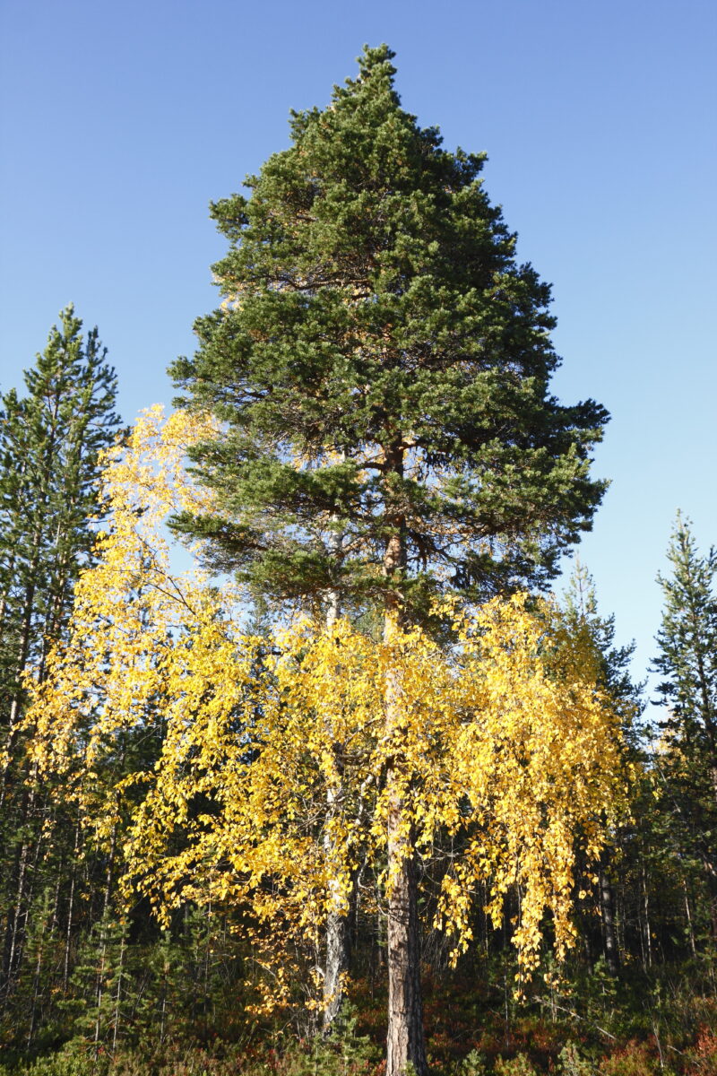 Koivu on hauskalla tavalla kietonut alaoksansa männyn ympärille.