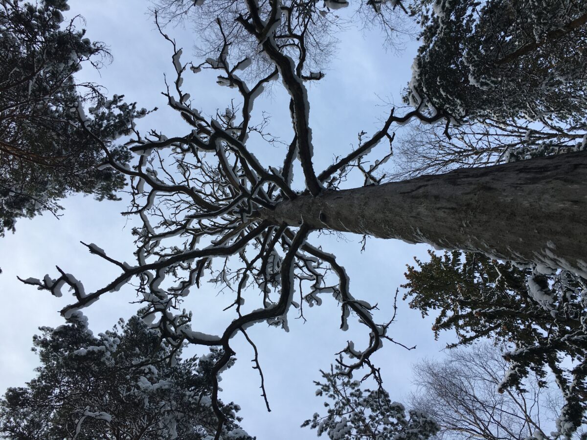 Talvella otetussa kuvassa kelonpuun kauneus korostuu,kun oksilla näkyy lumikerros. Puu n. kilometrin päässä kotoa Tampereen Leinolassa.